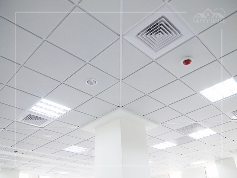 Более дешевый вариант это подвесные потолки. Подвесные потолки позволяют скрыть все коммуникации, встроить модульные и точечные светильники, и представляют из себя металлический каркас на который крепятся элементов. Существует несколько вариантов таких потолков: сплошные, реечные, ячеистые и плиточные.